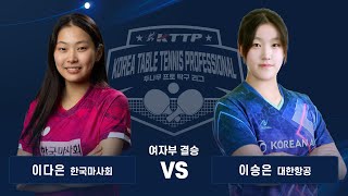 2025 두나무 프로탁구리그 여자부 결승 전체 영상 이다은(한국마사회) vs 이승은(대한항공)
